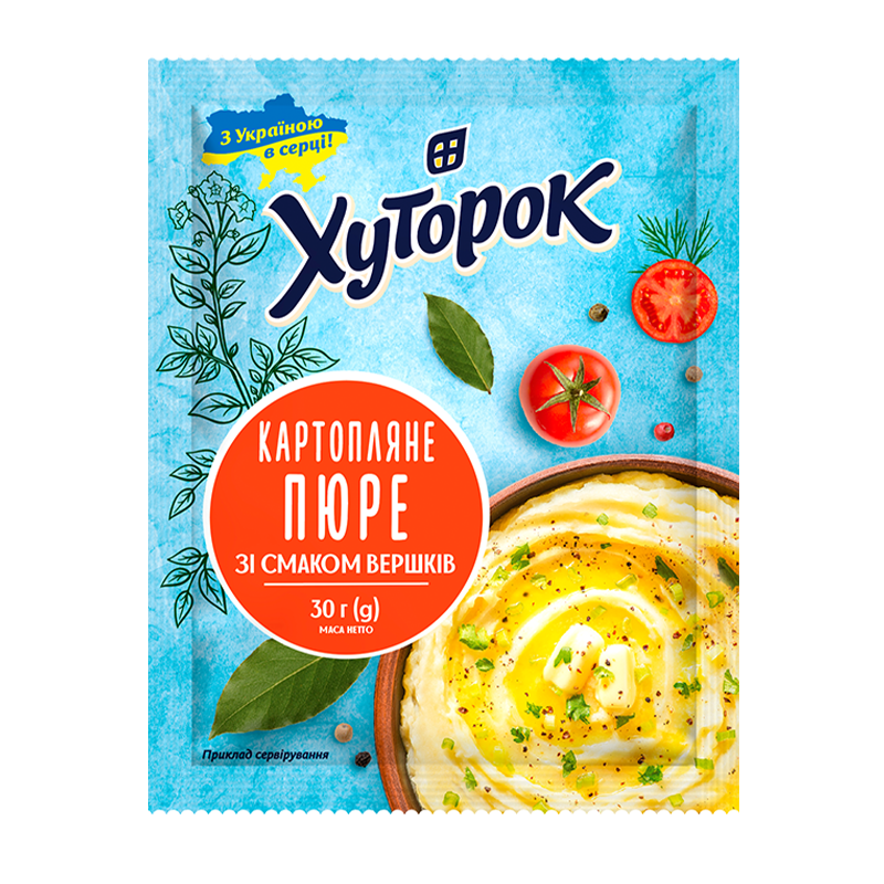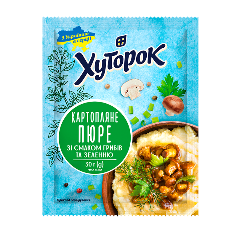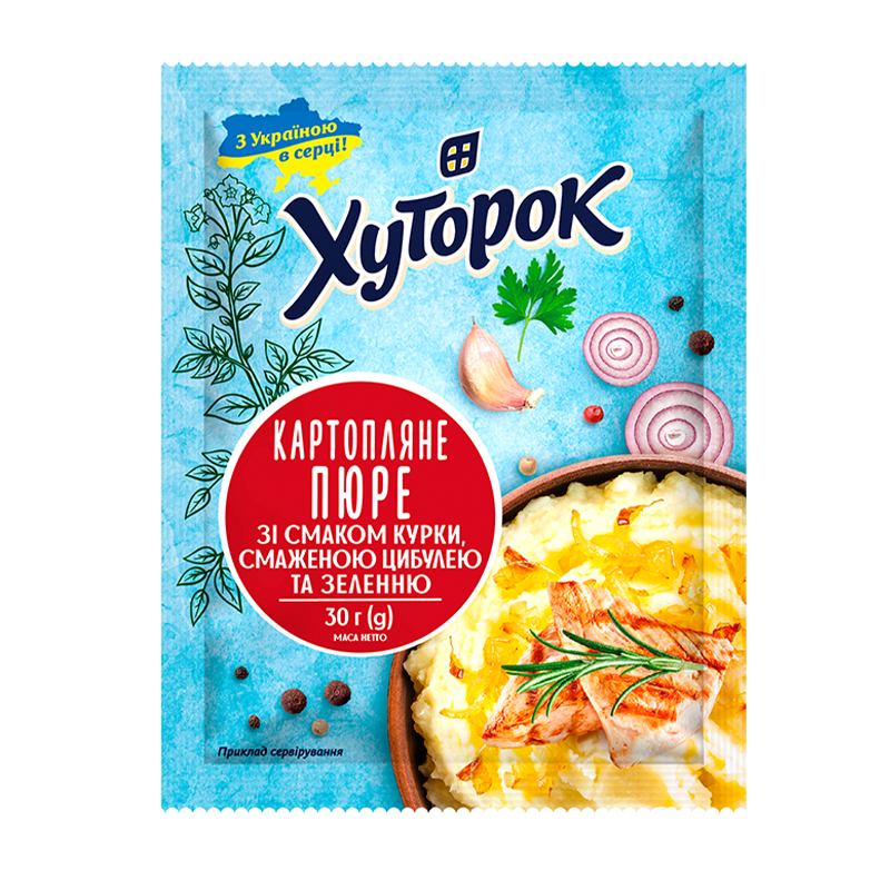 Картопляне пюре зі смаком курки, смаженою цибулею та зеленню ТМ «Хуторок» 30г