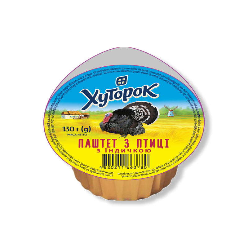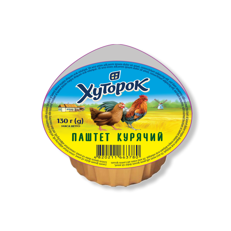 м’ясо куряче механічної обвалки 30%, вода, бекон 15%, шкурки свинини, крупа манна (містить глютен), модифікований крохмаль Е1412, рослинне бамбукове волокно, сіль, стабілізатори Е451i, Е450iii, E331iii, загусник Е407, декстроза, підсилювач смаку E621, модифікований крохмаль, ароматизатори, антиоксидант Е316, стабілізатор Е508, консервант Е250.